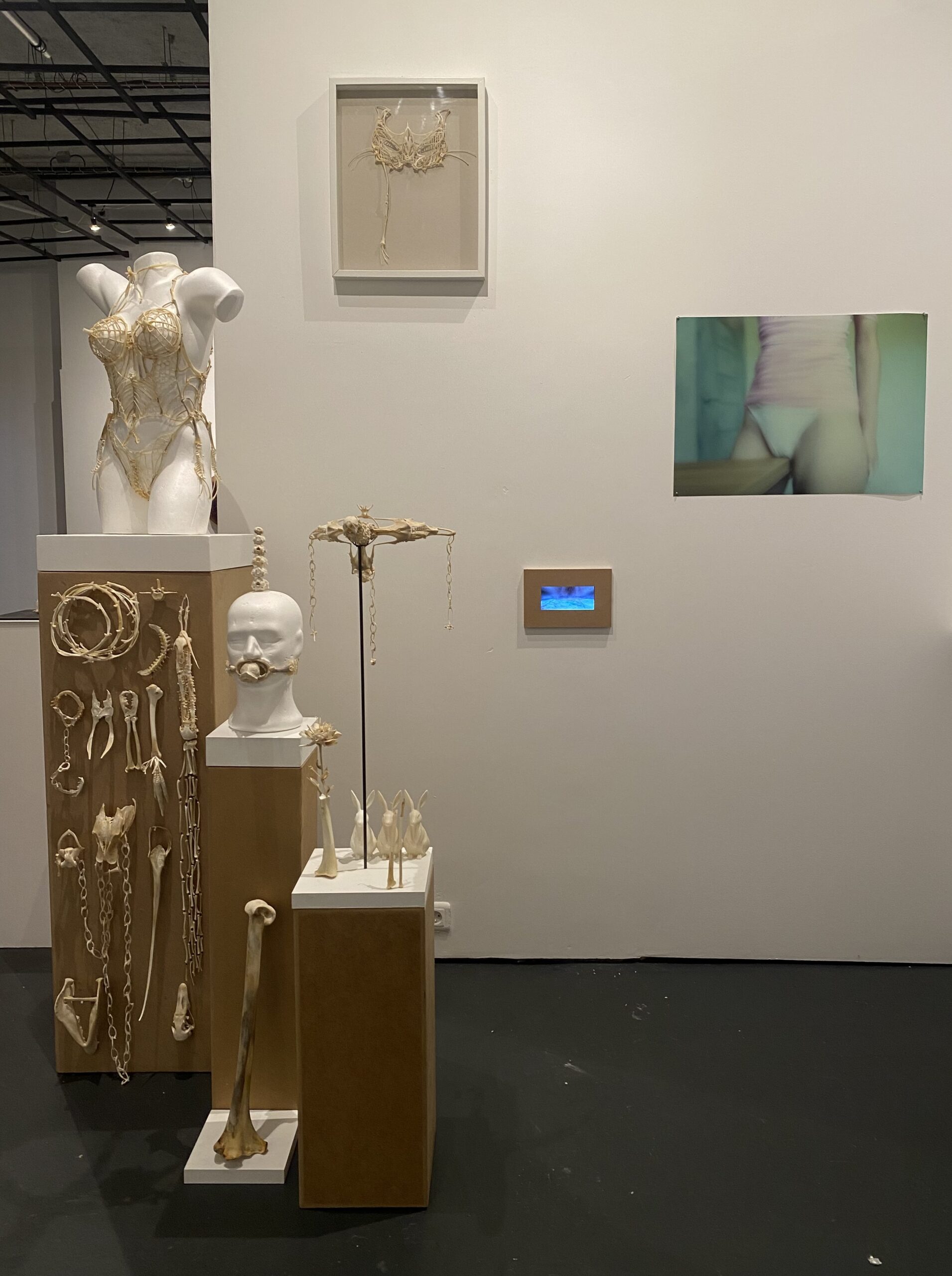Le volet 1 de l’exposition Plaisir se concentre sur la notion de « plaisir » dans son apport immédiat et ses travers, excès et conséquences. Les artistes, cruellement, ironiquement, poétiquement, dénonciateurs parfois, ont tous une réflexion sur la notion de plaisir immédiat, de récompense et d’addiction émotionnelle ou physique, à l’aide de mediums différents. Céline Cléron et Julie de Sousa nous parlent de nourriture, Jeanne Susplugas du besoin de pharmacopée et Mathieu Weiler de sa surdose. La drogue avec la fleur à base de MDMA de Bryan Crockett, les artéfacts du sexe avec les sculptures de Jessy Deshais et de Corine Borgnet prolongent la réflexion. Les notions d’érotisme et sexe se retrouvent dans l’empreinte sensuelle du corps avec la vidéo d’Hélène Langlois ou avec les photos de Jean-Luc Caradec et de Jérôme Combe. La beauté et la féérie du travail de Magali Lambert. La dérision se définie dans la vidéo de Nicolas Tourte. La peinture de Sébastien Layral D’Alessandro, nous conte alors la mythologie d’un plaisir interdit.