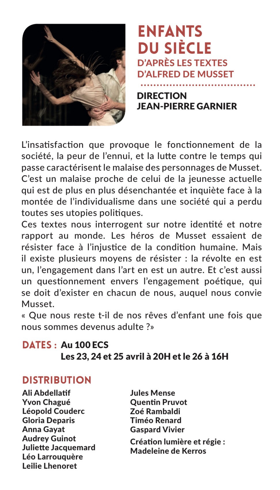 Les 23, 24, 25 avril à 20h & le 26 avril à 16h