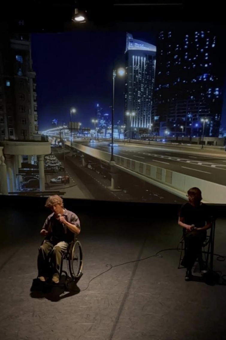 Duo avec Théo Sigognault, auteur et récitant, dans une intervention poétique au micro, accompagné de Phil Projo à la guitare.